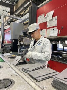 ㈱ハーベストでは、社員一人ひとりの成長を大切にしています。 今回は、入社4年目の社員が新たなステージに挑戦している姿をご紹介します。 これまで自動で金型交換を行う機械を操作していたこの社員は、さらなるスキルアップを目指し、自分の手で金型を交換し、曲げ加工を行う機械へ移行しました。 さらに、曲げた製品の寸法が正確に仕上がっているかを自ら検査し、品質を守る責任を担っています。 写真からも伝わる、曲げ加工に集中する真剣な表情と、寸法検査で確認する丁寧な姿勢。 こうした一つひとつの積み重ねが、ハーベストのものづくりを支えています。 「自分で金型を交換し、寸法を確認することで、加工の奥深さを実感しています」 この言葉に込められた情熱が、技術者としての成長を物語っています。 ㈱ハーベストは、社員の挑戦を応援し、技術力を高める環境づくりに力を入れています。