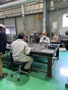 先日、当社では大学生向けの仕事体験会を実施しました。 参加してくれたのは2名の学生さん。 製造部長と次長がマンツーマンで丁寧に指導し、ものづくりの現場を体験していただきました。