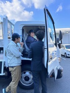 本日、待望の 4トントラック が納車されました! これまでの2トントラックからのステップアップで、配送効率が大幅に向上します。 納車時には、スタッフ全員でしっかりと説明を受け、安全運転のポイントを確認しました。